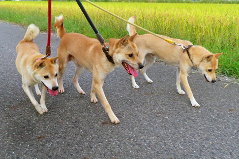 秋を感じながら気持ち良さそうに散歩する リキファミリーです。 クンクンしたりして思い思いに楽しく遊んだら ファミリーは家路を急ぐ。 食欲の···