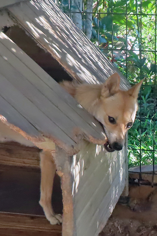 ユズの家の屋根に大きな穴が・・・ 屋根をかじってかじって(笑) 何か問題でも? 元々はモモさんがかじって開けたので 私の責任じゃありません(···