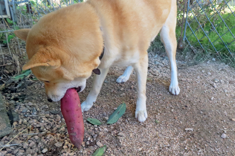 さつま芋を食べるリキ